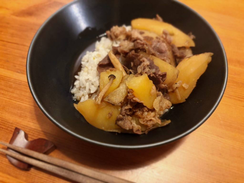 昨晩のおかずは、一昨日収穫したての新じゃがいもを使った、肉じゃがでした。